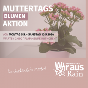 Was Rain zu bieten hat? Wir sagen – eine ganze Menge und weit mehr, als man auf den ersten Blick denkt! Charmant und überraschend präsentiert sich die Kleinstadt an der Romantischen Straße: Von der schönen historischen Altstadt mit Bekleidungsgeschäften, einer schicken Buchhandlung und einem inklusiven Schreibwaren-Geschäft mit Geschenkideen, gefertigt von Menschen mit Behinderung, bis hin zum großen Einkaufszentrum am östlichen Ortseingang. Und Rain macht nicht nur als Einkaufsstadt eine gute Figur – die Stadt im Donau-Ries punktet auch mit attraktiven Job-Angeboten, als Unternehmens-Standort, für Bauherren, Senioren und junge Familien. Als Gewerbeverband nehmen wir Sie gerne mit auf einen Streifzug durch unsere Blumenstadt!